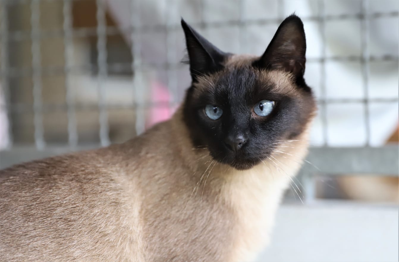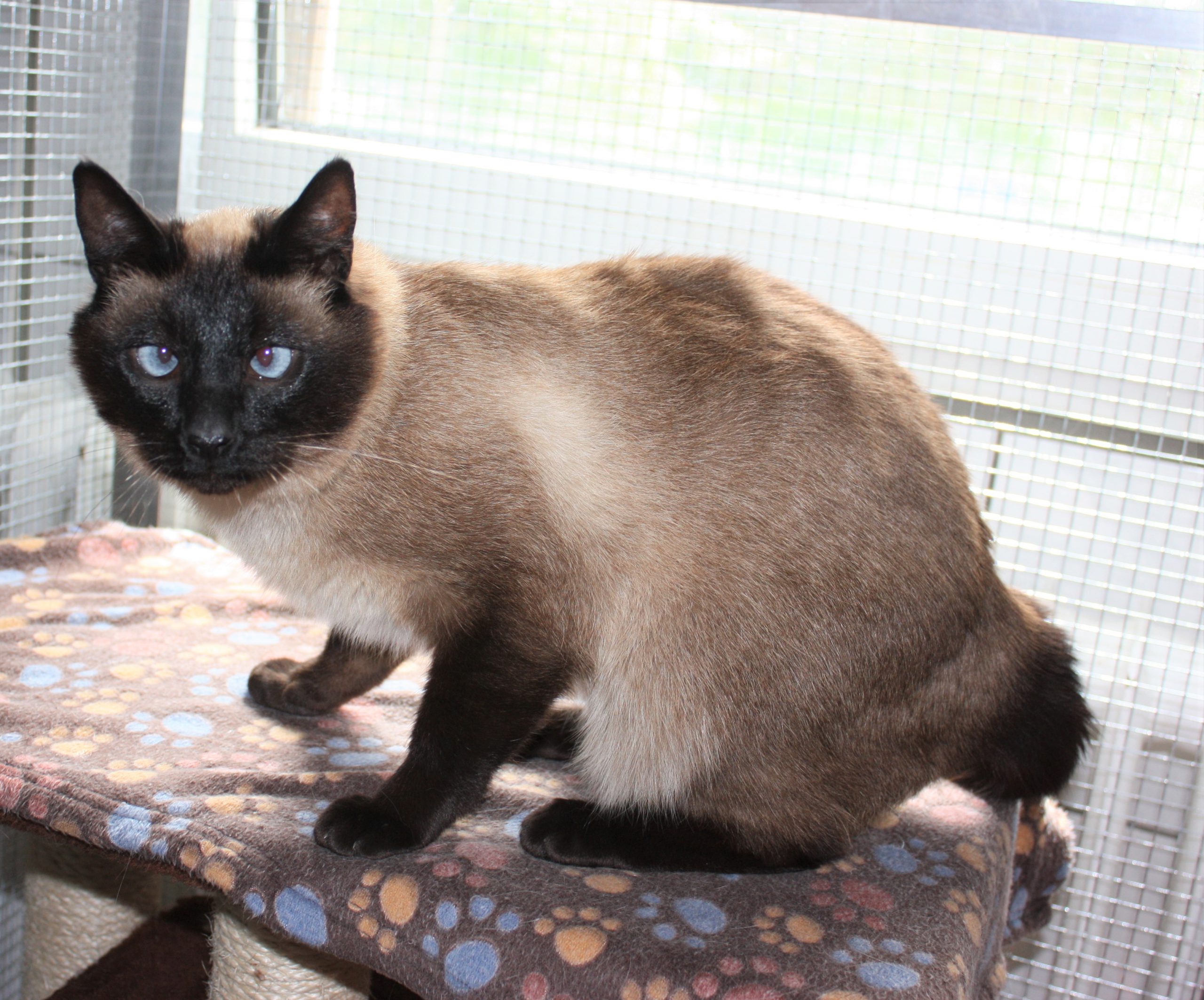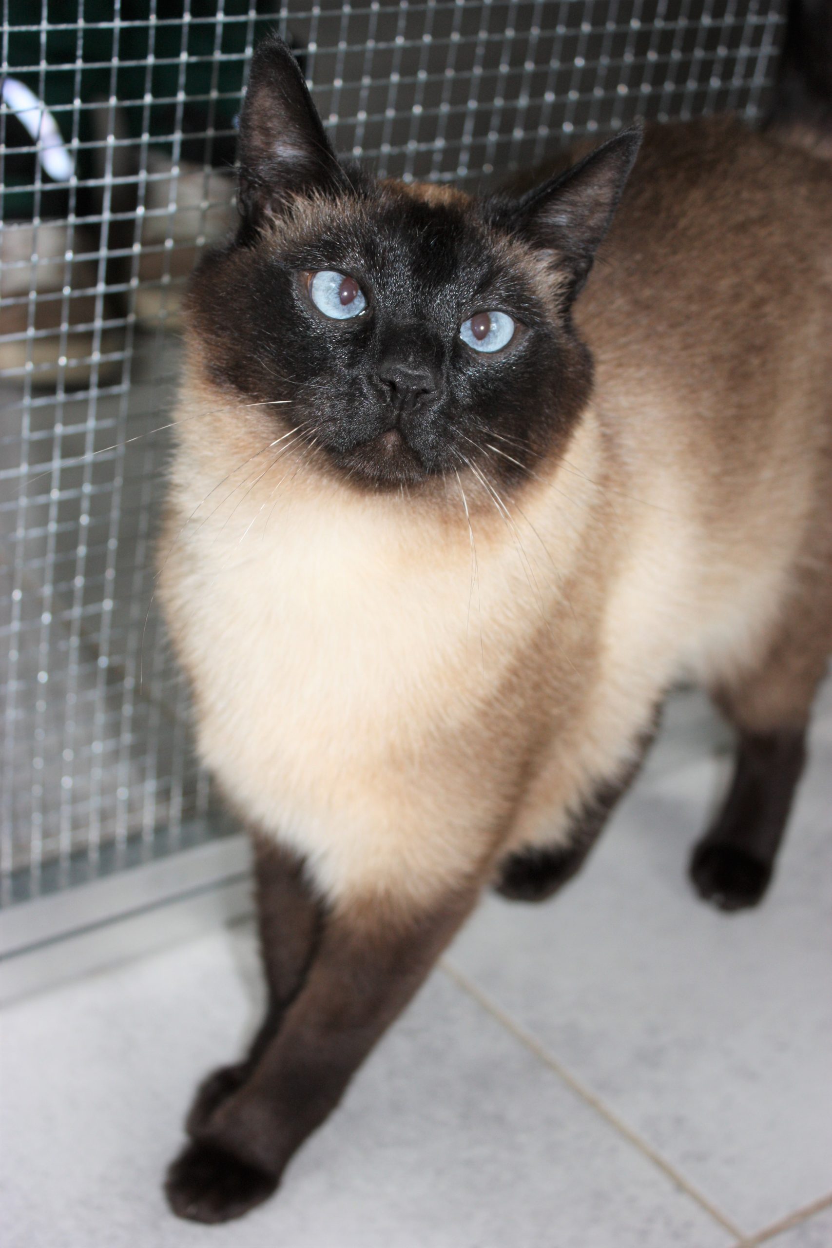 Das lebhafte Siam-Katzenpaar Felix und Randy wurde bei uns im Tierheim abgegeben. Man sagt Siamkatzen nach, dass sie sehr „redselig“ sind und das traf zumindest auf Felix voll und ganz zu. Das schöne Fellnasen-Pärchen war in den Katzenstuben einfach nur freundlich und aufgeschlossen, unkompliziert und sehr aktiv. Da konnte es Besuchern auch schnell geschehen, dass Felix ihnen auf die Schultern sprang, sich jemandem auf den Schoß legte, „Köpfchen gab“ oder auf irgendeine andere Art und Weise Aufmerksamkeit auf seine liebenswürdige Art einforderte. Zudem hat Felix einen ganz entzückenden Silberblick, der ihm etwas von „Clarence, dem schielenden Löwen“ aus der alten Fernsehserie „Daktari“ verleiht.