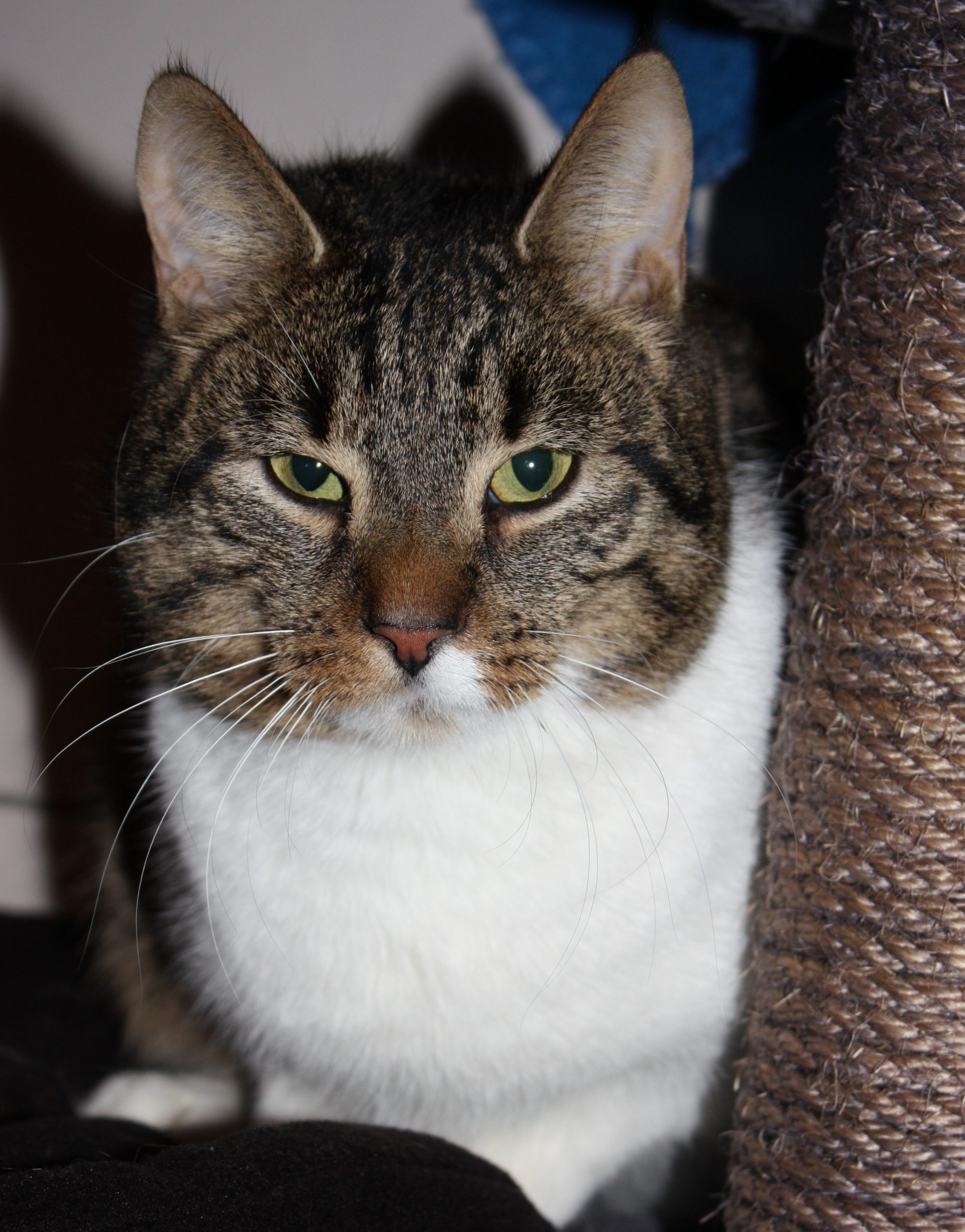 Der stattliche junge Grautiger Romeo war gemeinsam mit zwei Katzendamen zu uns gebracht worden. Er war von den drei Samtpfoten der Zugänglichste und begegnete seinen Besuchern freundlich und offen.