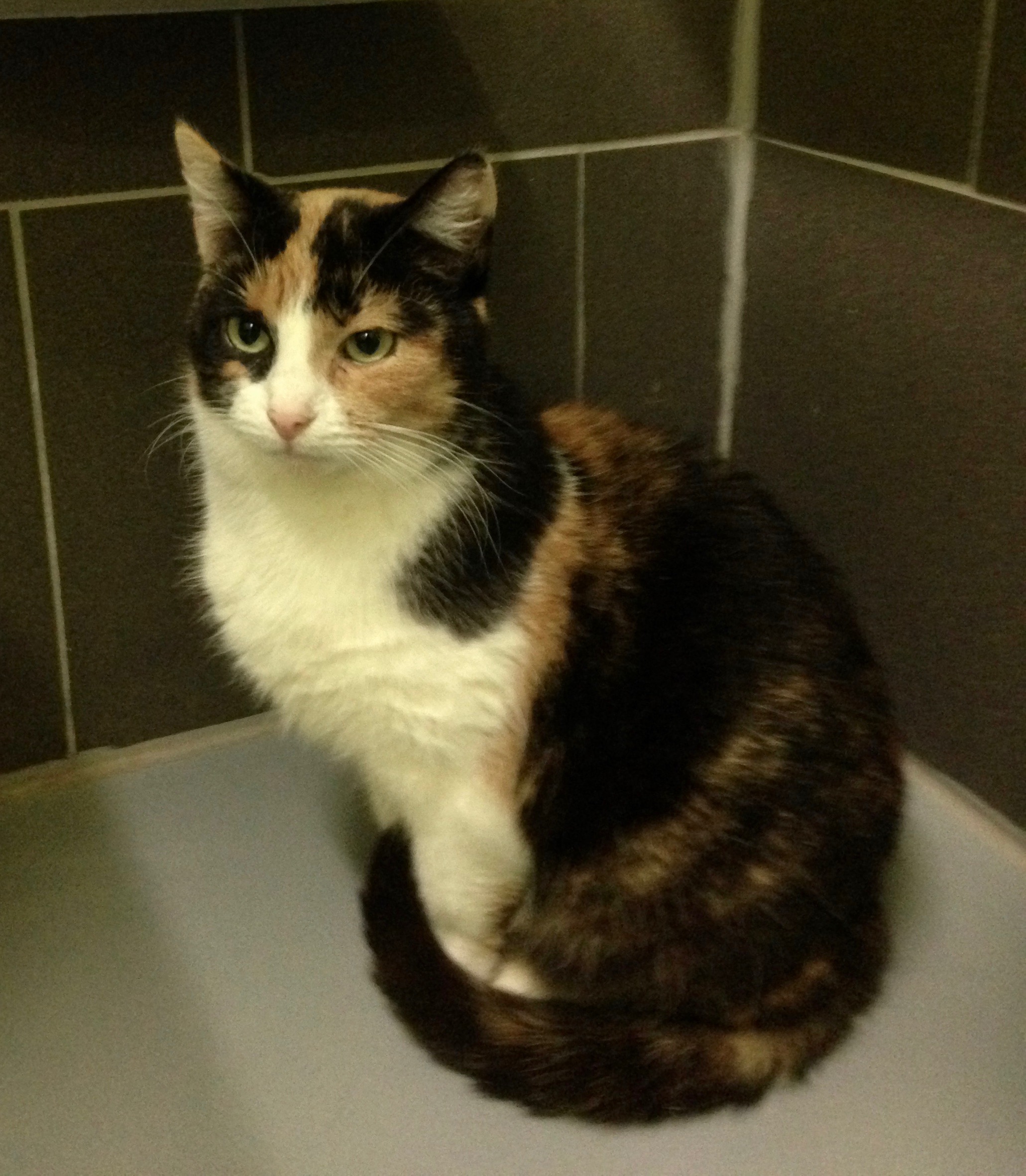 Die freundliche Fellnase mit der schönen Tricolor-Färbung kam gemeinsam mit einigen ihrer Artgenossen aus einem befreundeten Tierheim zu uns. Gerade erst eingezogen, hatte sie bereits ihre eigene „Fangemeinde“.