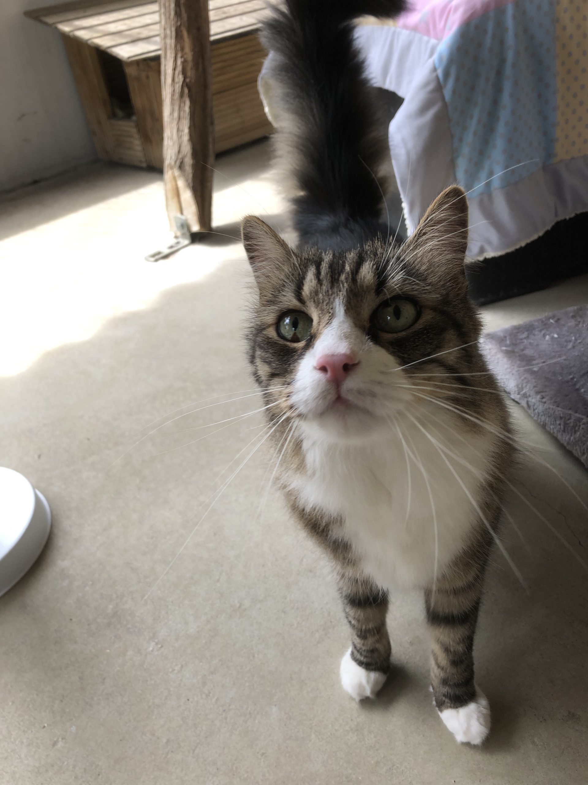 Einmal bei uns eingelebt, zog der schöne Langhaarkater, der in seiner Ahnenreihe eine Waldkatze vorzeigen kann, durch sein beeindruckendes Äußeres rasch alle Blicke auf sich. Wenn er dann noch fröhlich mauzend jeden Besucher empfing, hatte er alle um seine plüschige Pfote gewickelt.