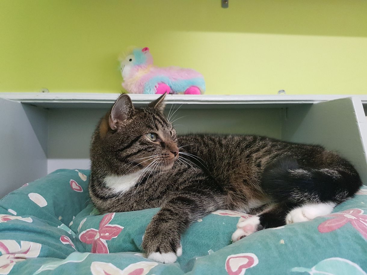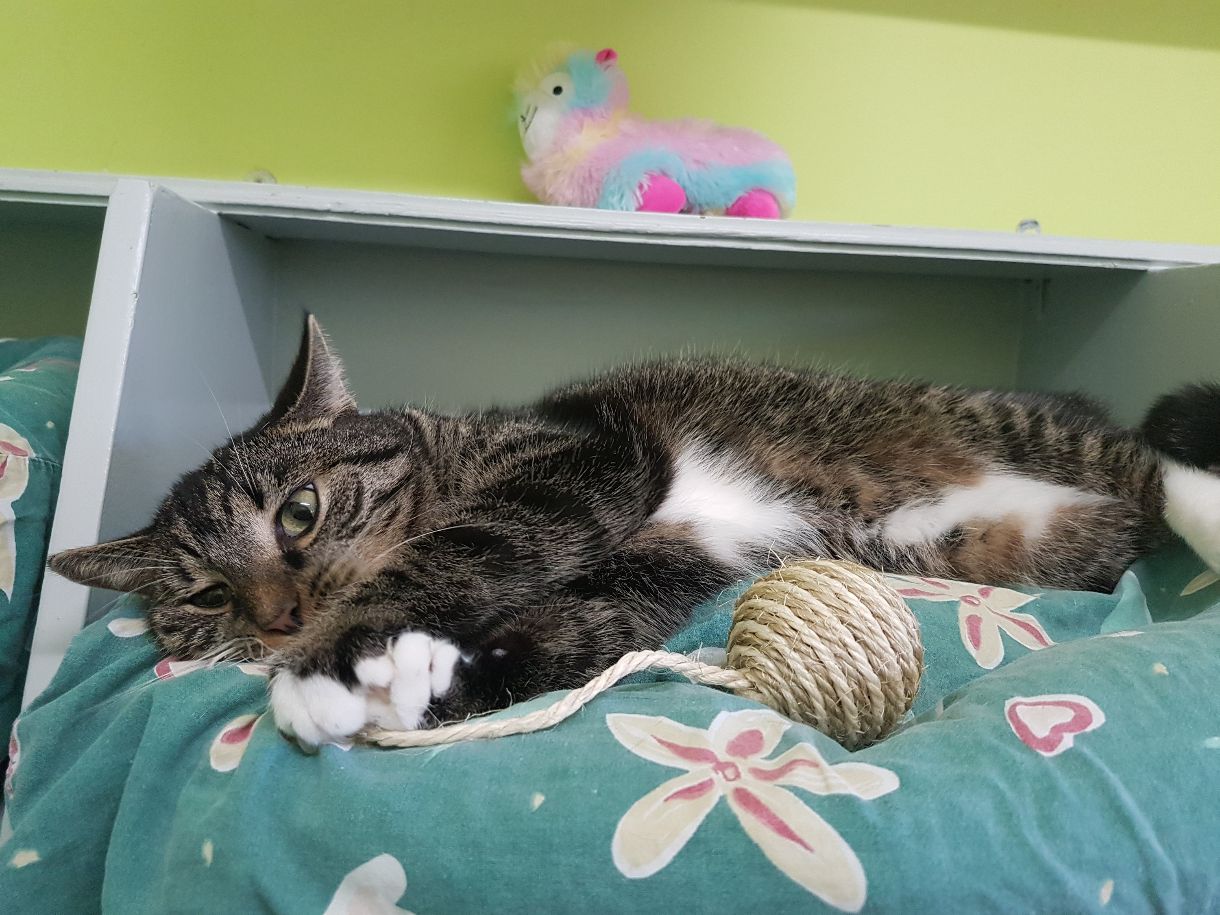 Schließlich kam ein junges Paar, um ihn zu besuchen und es endete, wie es enden musste: Spider gewann ihre Herzen und bekam sein neues Zuhause! Wir haben sogar schon einige vielversprechende Nachrichten von dort erhalten, was die Vergesellschaftung mit der im Haushalt lebenden Katze „Mei“ betrifft.