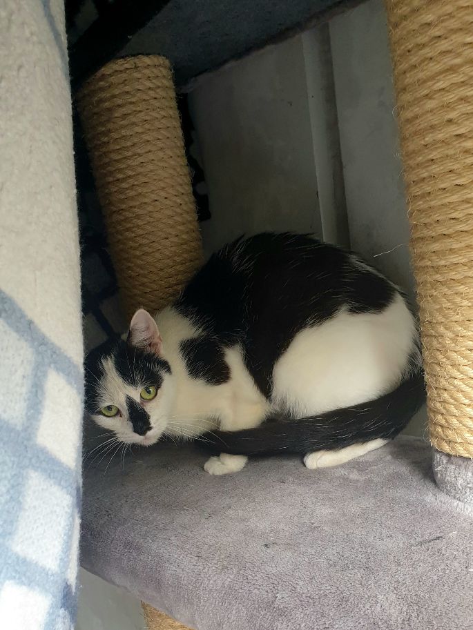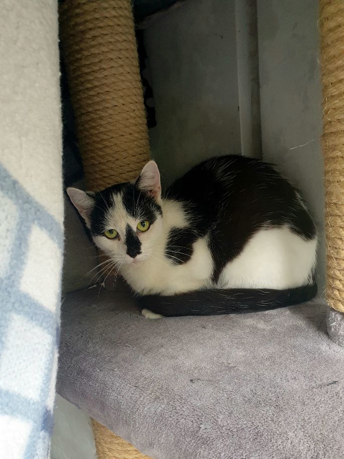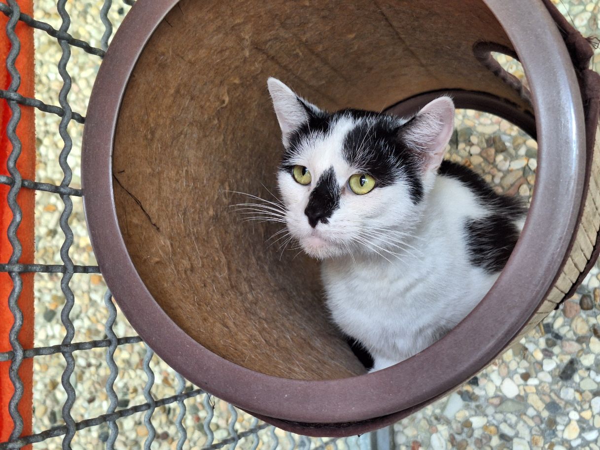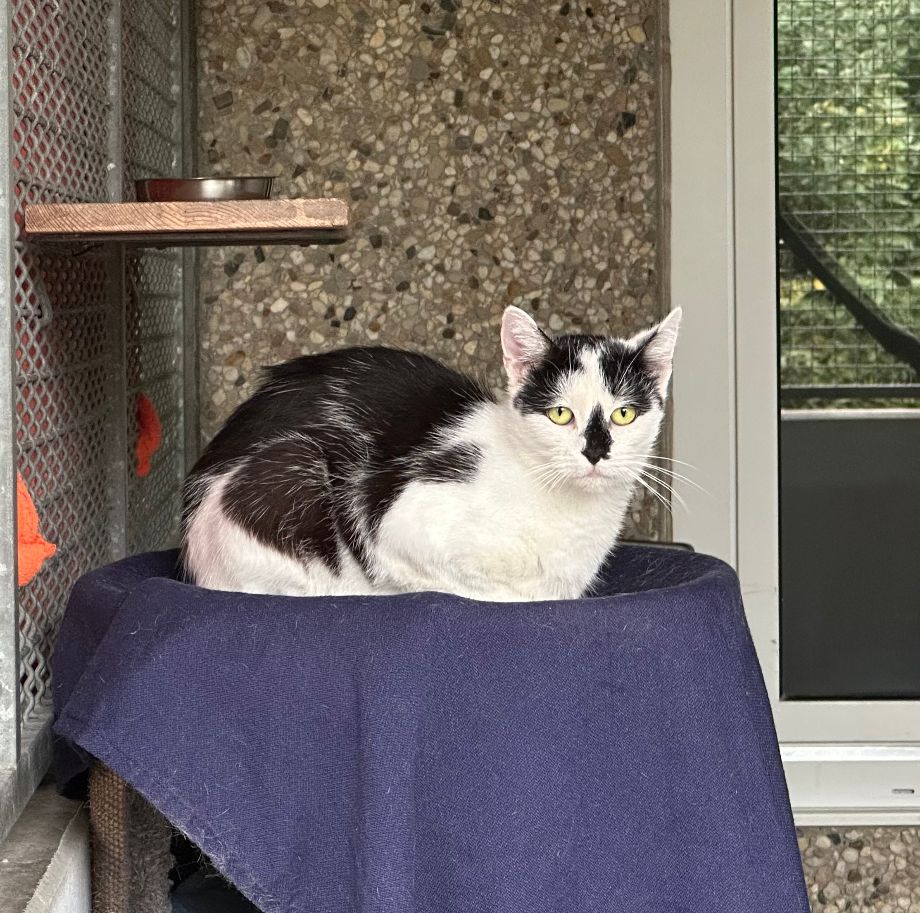 Die schüchterne Stracciatella wurde als Fundkatze mit ihren beiden Kindern Amarena & Cornetto im Tierheim aufgenommen.