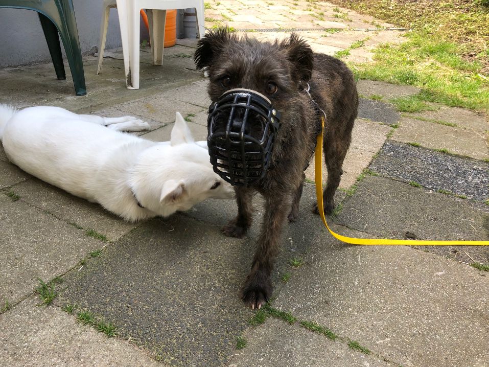 Leider nahm dein aggressives Verhalten zu und du musstest dauerhaft zum Schutz unserer Mitarbeiter einen Maulkorb tragen.