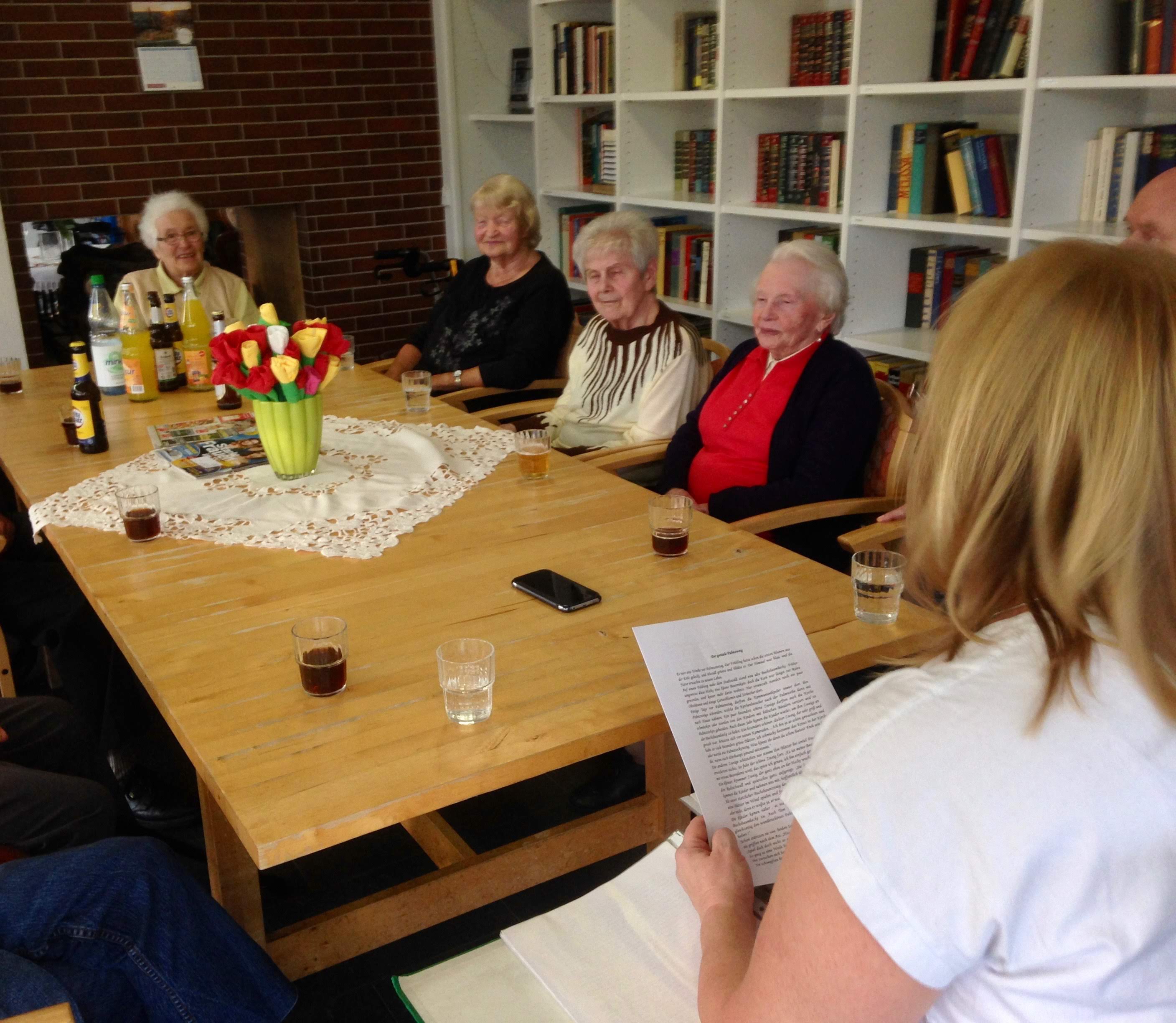 In gemütlicher Atmosphäre im Kaminzimmer des Heimes, las die Heiligenhauser Autorin mit lebendiger und ausdrucksstarker Stimme aus ihren eigenen Werken vor und wählte eine schöne Mischung aus Märchen und Gedichten, aus heiteren und besinnlichen Texten. Die Lesestunde, die reges Interesse bei den Bewohnern fand, wurde von Herrn Hubert Gabor, Mitarbeiter des Sozialdienstes des Hauses und seinem freundlichen jungen Helfer umsichtig begleitet und mit Humor und Herz organisiert. Zwischen den einzelnen Texten gab es immer wieder Gelegenheit, alten Volksweisen zu lauschen und dabei wurde auch kräftig mitgesungen und viel gelacht. Zum Abschluss erklang noch einmal das Jazz-Stück: „What a wonderful world“ von Louis Armstrong und alle waren sich einig darüber, dass dies ein gemütlicher und rundum gelungener und kurzweiliger Abend war, der Alt und Jung viel Freude bereitete.