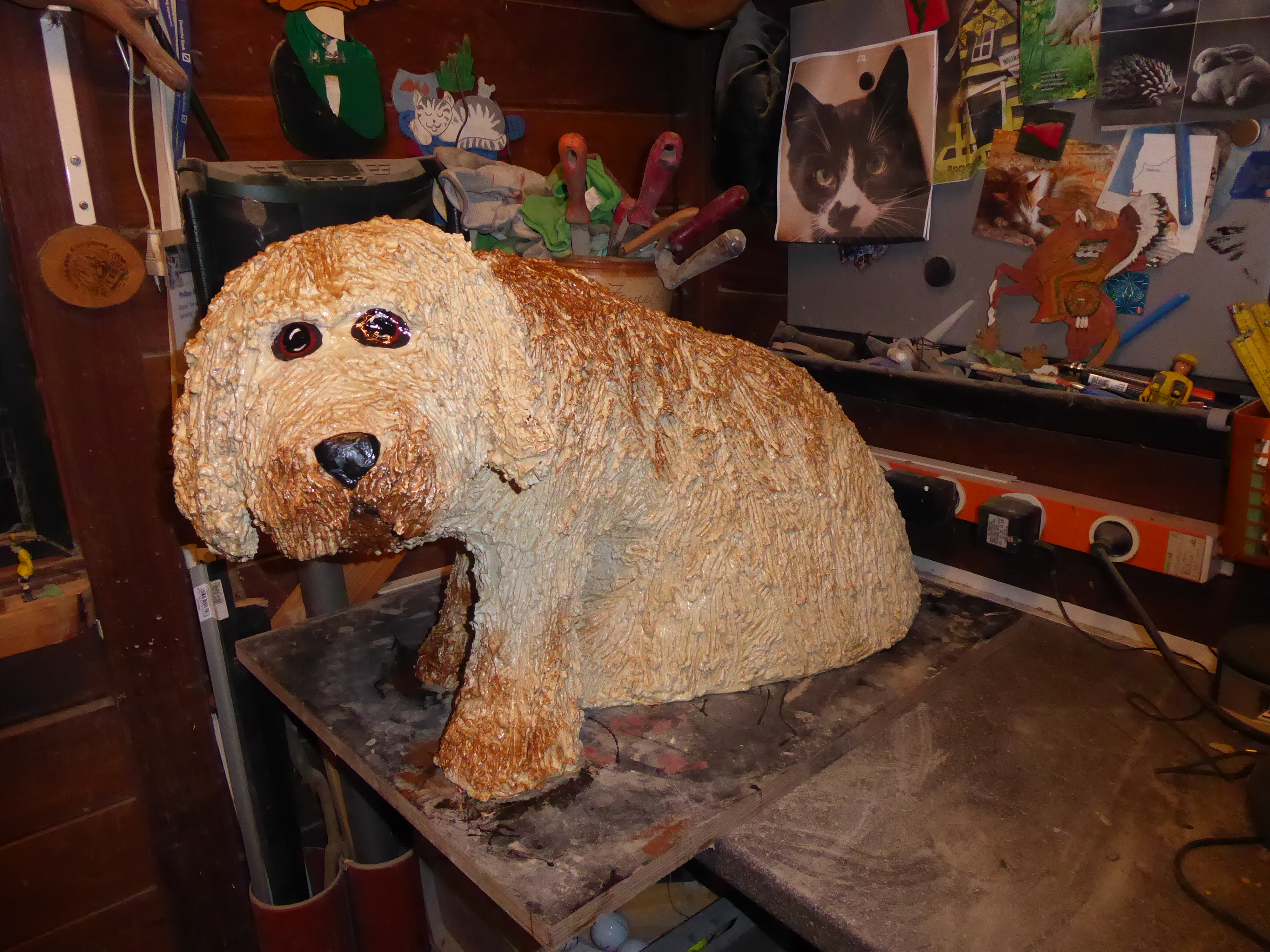 Zurück aus Finnland kam die Nachricht, dass Raijas geliebter Hund Alli plötzlich und unerwartet über die Regenbogenbrücke gegangen ist. Sie ist unendlich traurig. Da kam der Wunsch auf, ob ich nicht auch eine „Kopie“ von Alli aus meinem Material machen könnte.