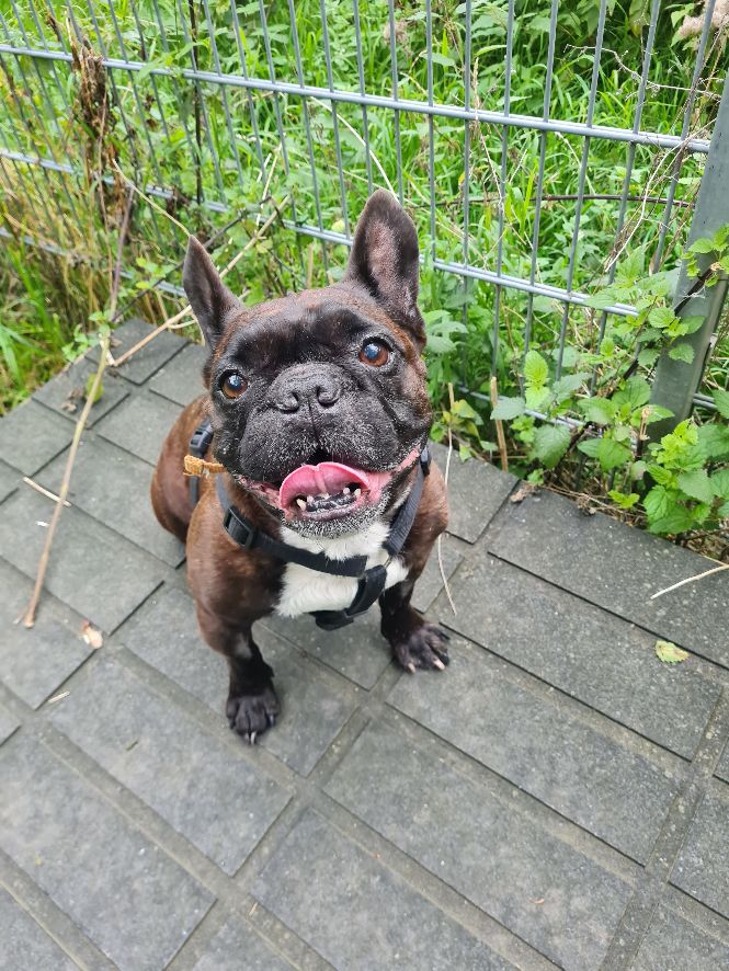 Timati wurde wegen beruflichen Veränderungen bei uns abgegeben. Er ist Rassetypisch von der Atmung her sehr stark eingeschränkt, deshalb wurde bei der Tierärztlichen Untersuchung angeraten, die Nasenlöcher zu erweitern, um Timati mehr Lebensqualität zu bieten, zeitgleich soll der Gaumensegel gekürzt werden. Aufgrund dieser Problematiken sind größere Spaziergänge eher kritisch, wobei wenn es nach Timati gehen würde, könnte er ewig laufen. Sprich hier und da muss man ihn bremsen und kleinere Pausen einlegen. Ansonsten ist er ein toller Hund, welcher ziemlich albern werden kann und enorm viel gute Laune versprüht. Laut Angaben der Vorbesitzer kann Timati nicht alleine bleiben, dies äußert sich durch bellen und jaulen. Demnach wäre ein Zuhause wünschenswert, indem er entweder mit zur Arbeit kann, oder im Homeoffice gearbeite wird. Bei anderen Hunden entscheidet die Sympathie. Im Alltag hat er sich bisher bei uns sehr unauffällig anderen Hunden gegenüber gezeigt. Bei der Adoption von Timati muss man sich im klaren darüber sein, dass es sich um eine Qualzucht handelt und eventuelle gesundheitliche Probleme wie z.B. Allergien aufkommen könnten.