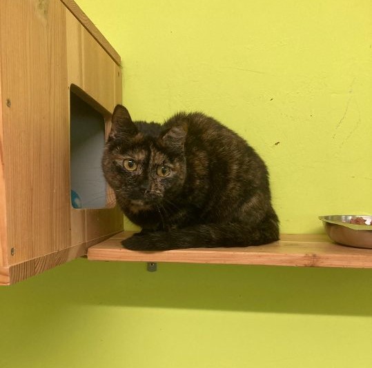 Die beiden bezaubernden Schildpattkatzen Trixie und Lilli waren gemeinsam zu uns ins Tierheim gezogen. Zunächst waren sie ein wenig mit der Situation überfordert und versteckten sich lieber in ihren Kuschelhöhlen. Als sie aber bemerkten, dass nichts Schlimmeres in der Katzenstube passierte, als dass ein Artgenosse durch die Stube trabte oder ein freundlicher Zweibeiner Essen vorbeibrachte, da entspannten sich die beiden schönen Katzendamen zunehmend und trauten sich immer ein bisschen mehr.