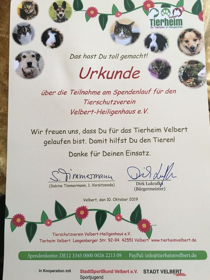 Heute war es endlich soweit. Die Stadtmeisterschaft der Velberter Grundschulen wurde im Waldlauf durchgeführt. Am Langenberger Sender fand vormittags der traditionell vom StadtSportBund ausgerichtete Lauf statt. Dieses Mal jedoch war es ein besonderer Lauf. Bürgermeister Dirk Lukrafka war Schirmherr für einen Spendenlauf zugunsten unserer Tiere. „Der Tierschutzverein leistet seit Jahren eine großartige und wichtige Arbeit für unsere Städte, die ich immer wieder gerne unterstütze“, so der Bürgermeister. So kam die Idee des Spendenlaufs zusammen mit dem Vorstand des Tierschutzvereins zustande. 221 Schüler von acht Grundschulen haben teilgenommen. Unterstützt wurde der Lauf von der Wilka Schließtechnik GmbH, dem LaminatDEPOT, der Wohnungsbaugesellschaft Velbert mbH, den Stadtwerken Velbert GmbH sowie den Veranstaltern StadtSportbund und Stadt Velbert. Dadurch sind für jedes teilnehmende Kind knapp 10 Euro zusammen gekommen. Eine schöne Summe. Unser Dank gilt neben den Kindern, die tolle Läufe hingelegt haben natürlich allen Helfern vor Ort und den Velberter Unternehmen, die uns ihre Hilfe zugesagt haben. Die Spendenübergabe erfolgt an einem gesonderten Termin im Tierheim Velbert.