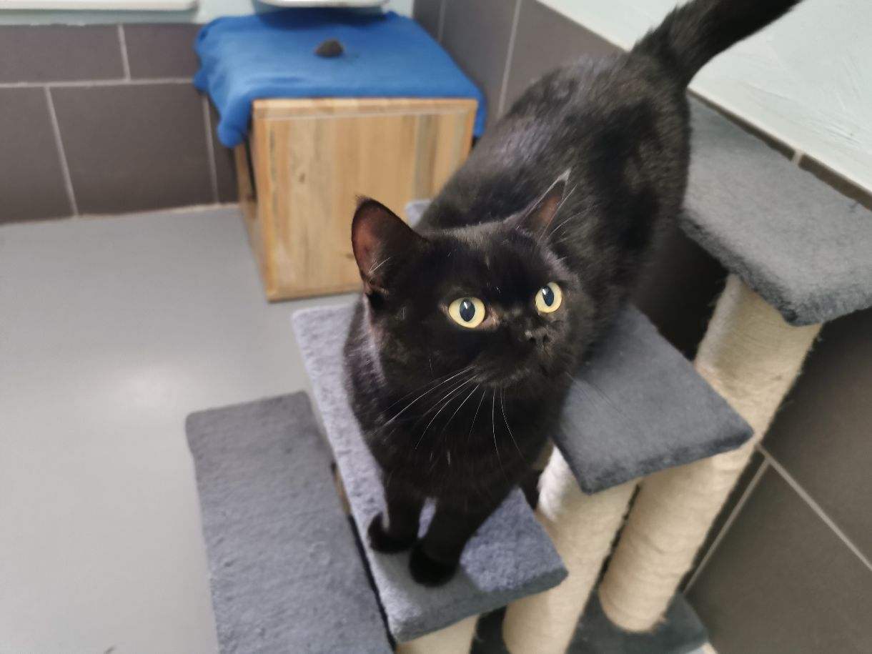 Wally, eine niedliche BKH- Katzendame, war ursprünglich als Fundtier zu uns gekommen. Hier becircte die menschenbezogene Kuschelmaus alle Zweibeiner mit ihrer liebenswerten Art, und so war es kein Wunder, dass die schwarze Samtpfote ganz rasch ein neues Zuhause fand. Erst mal eingezogen, zeigte sie sich aber der bereits im Haushalt lebenden Katze gegenüber dermaßen uncharmant und schüchterte diese so ein, dass nur noch die Trennung blieb. So machte sich unsere ansonsten so schmusige Fellnase von ihrer „Tierheim-Basisstation“ aus, erneut auf die Suche nach einem neuen Heim – ganz ohne lästige Konkurrenz.